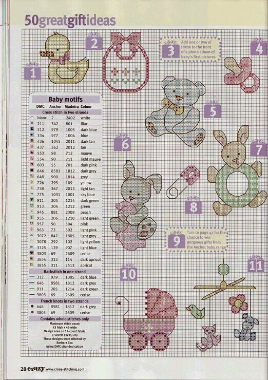 Hoje começaremos a semana com os "Gráficos para o Enxoval do Bebê em Ponto Cruz". São doze gráficos variados com mamadeiras, bebezinhos, chupetas, sapatinhos e bichinhos para bordar fraldinhas, toalhinhas de boca, babadores, acessórios, bolsas, quadrinhos, lembrancinhas de maternidade, etc... Tudo dependerá da criatividade!