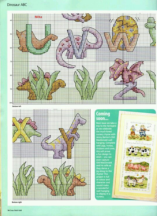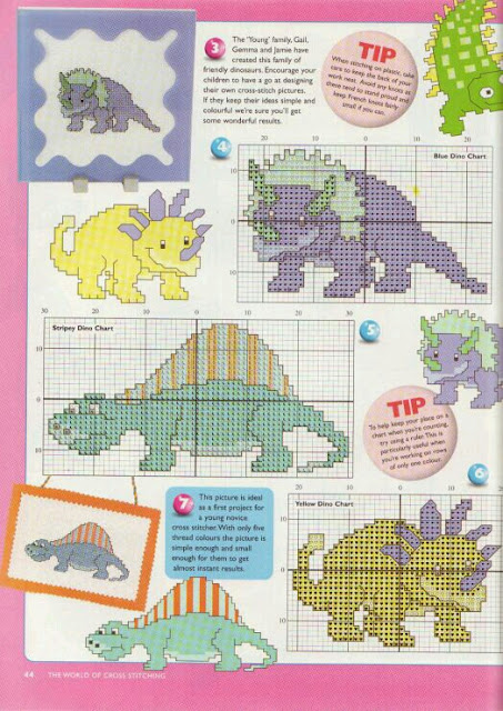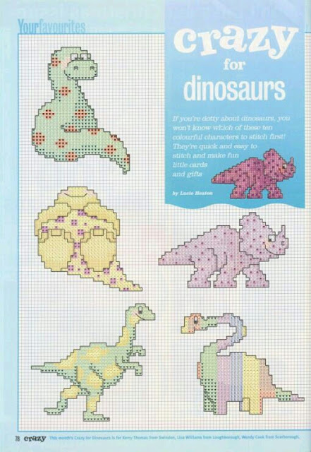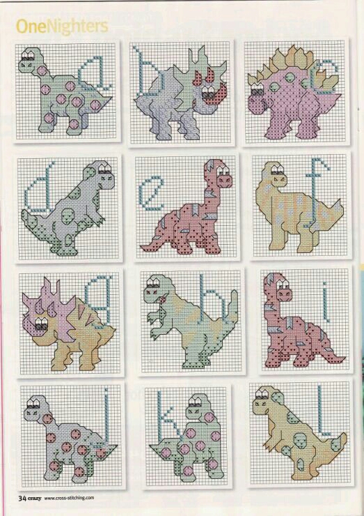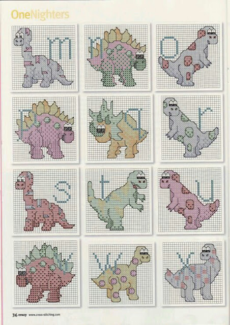 Hoje começaremos a semana com os "Monogramas dos Dinossauros em Ponto Cruz". São dois gráficos com alfabetos completos e mais três gráficos recheados de todos os tipos de dinossauros. Estes bichos são um sucesso, muito queridos pela criançada. Podemos bordá-los em toalhas de banho, toalhinhas de boca, babadores, fraldinhas, quadros e acessórios infantis.