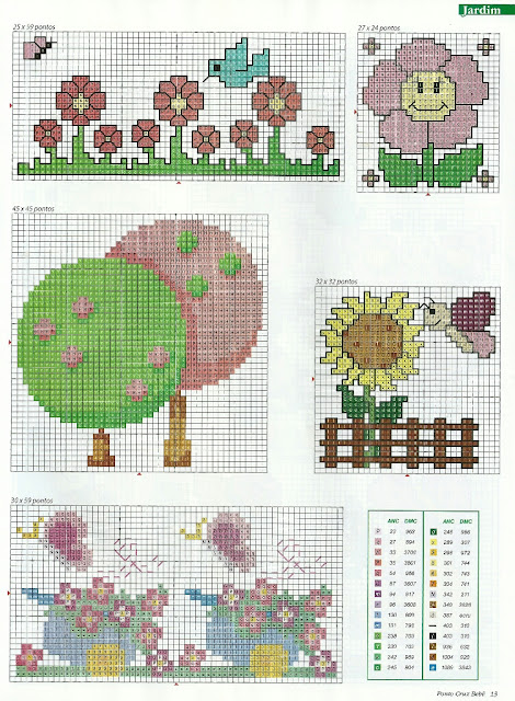 Hoje trouxe para vocês o "Encanto de Jardim em Ponto Cruz". São seis gráficos recheados de lindas flores, passarinhos, joaninhas, cogumelos, borboletas, caramujo, e as meninas do campo. Com eles podemos bordar desde kits para cozinha até o enxoval do bebê, pois são motivos muito alegres e delicados.