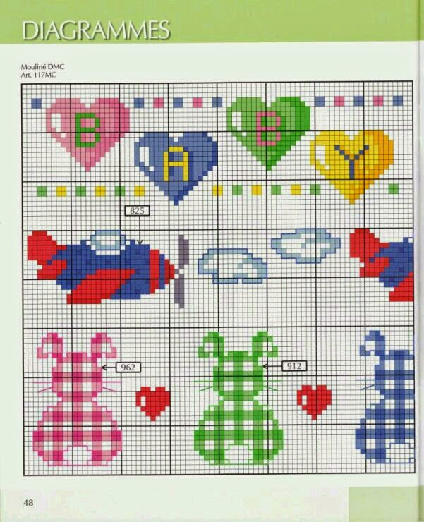 Hoje trouxe para vocês o "Enxoval do Bebê: Gráficos Fáceis em Ponto Cruz". São seis gráficos super fofos e muito fáceis de bordar; com aviões, coelhinhos, ursinho, chupeta, bebezinho, flores, casinha e trenzinho. Tudo muito colorido para alegrar as roupinhas e os acessórios do bebê.