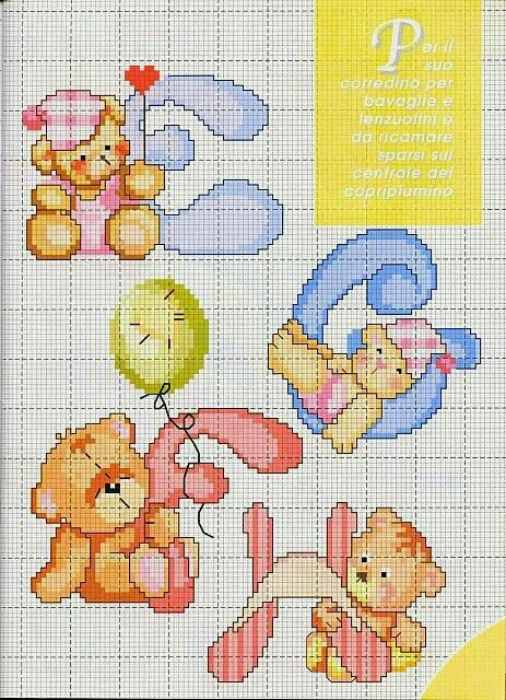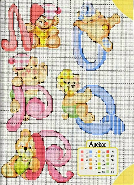 Enxoval do Bebê: Monogramas dos Ursinhos em Ponto Cruz