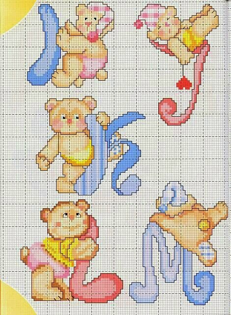Hoje começaremos a semana com o gráfico "Alfabeto Ursinhos para Bebês em Ponto Cruz". Este é um lindo e delicado monograma para bordar no enxoval dos bebês (toalhas, fraldas, babadores e acessórios para as crianças).