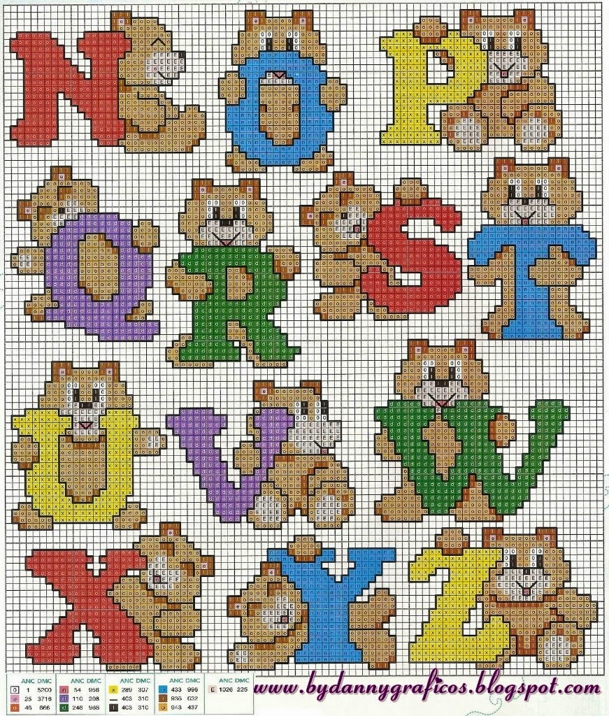Gráficos sem Tabela de Cores: Os gráficos que eu postar aqui e que não estiverem com a tabela de cores, é porque eu não os tenho mesmo. Mas muitos dos gráficos podemos improvisar e usar cores semelhantes ao do desenho. Obrigada.