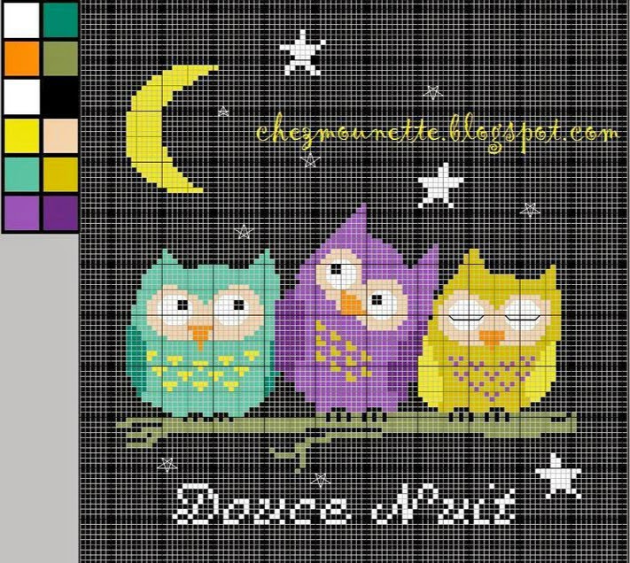 Corujinhas Coloridas e Monograma em Ponto Cruz