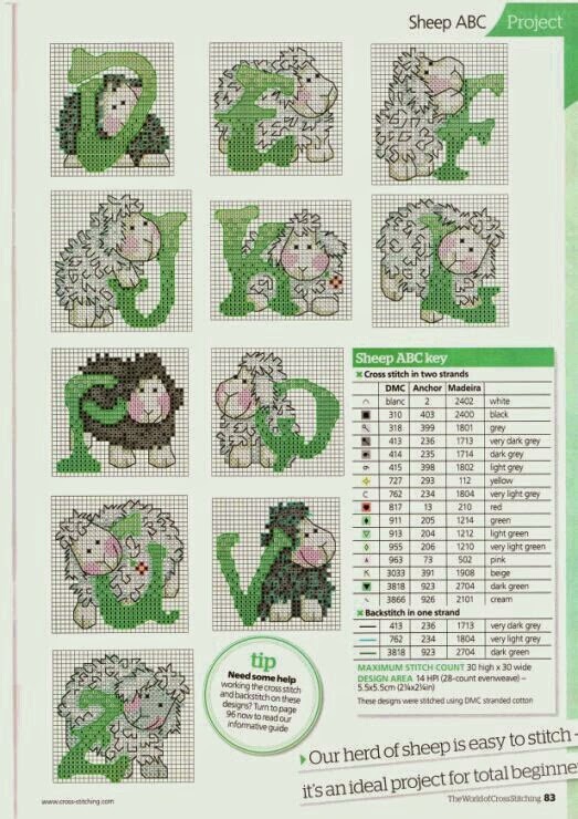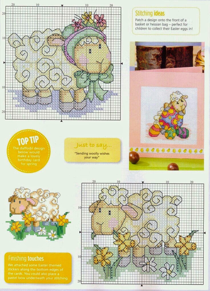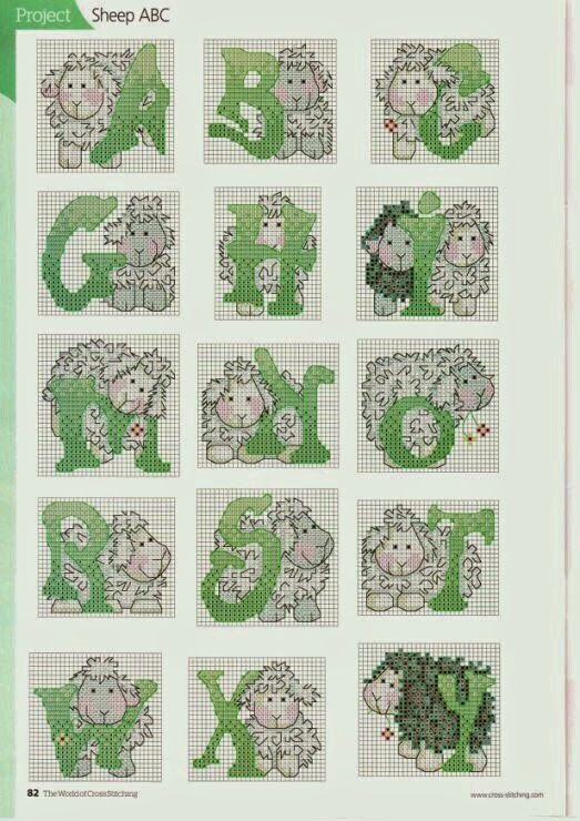 Hoje começaremos a semana com as "Ovelhinhas para Bordar em Ponto Cruz". São sete gráficos com graciosas ovelhinhas e um lindo monograma para combinar. É um delicado motivo para bordar o enxoval do bebê.