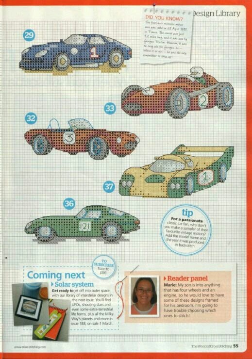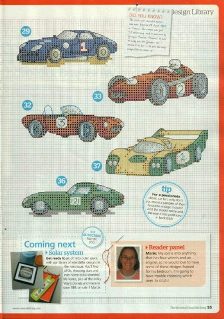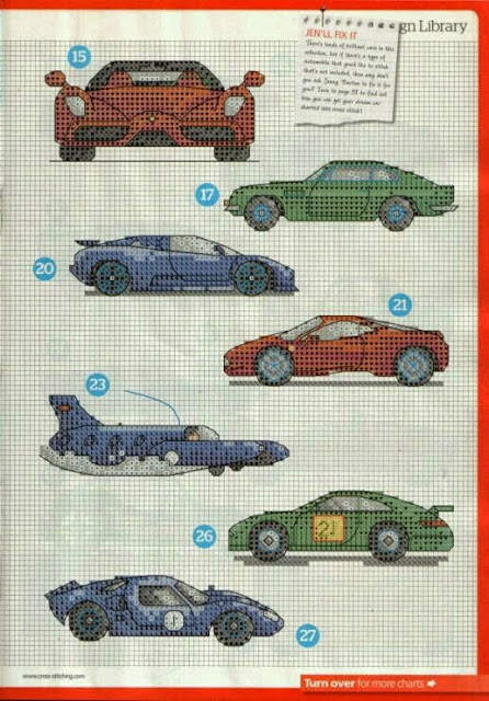 Hoje trouxe para vocês os "Carros de Corrida: Kart, Fórmula 1 e Rally em Ponto Cruz". São cinco gráficos com vários tipos de carros de automobilismo: corrida de fórmula 1, kart, rally, quadriciclo, etc. Trouxe também um gráfico com algumas marcas famosas de carros. Tudo que os meninos amam para bordar em suas toalhas, aplicar em camisetas e acessórios.