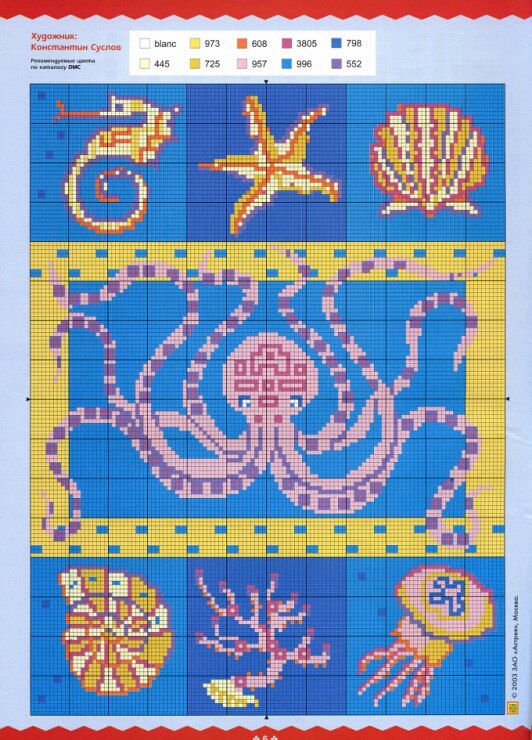 Hoje trouxe para vocês o "Fundo do Mar para Bordar em Ponto Cruz". São quatro gráficos com vários peixinhos coloridos, conchas, corais, estrelas do mar, polvo, caranguejo e cavalo marinho. Podemos bordar quadros, toalhas de mesa, panos de prato, jogos americanos, etc...