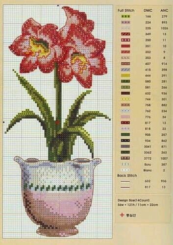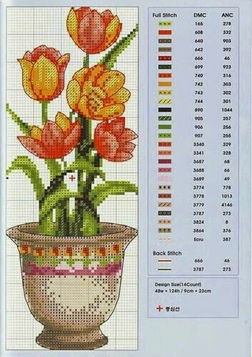 Hoje trouxe para vocês os "Vasos com Flores em Ponto Cruz". São quatro gráficos de quadros com lindas flores para bordar e decorar nossa casa, vender ou dar de presente. As flores são: Orquídeas, Hortências, Amarílis e Tulipas.