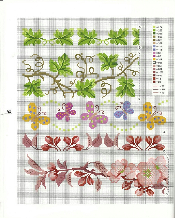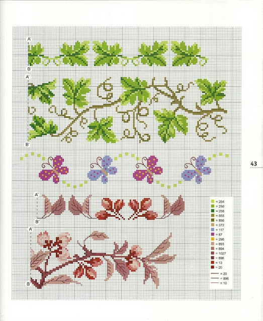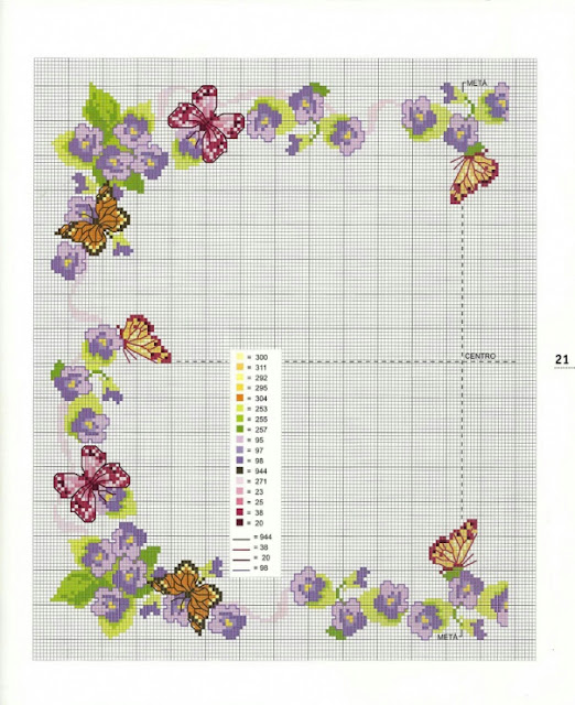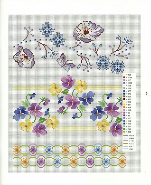 Hoje começaremos a semana com os gráficos "Barrados com Flores e Borboletas em Ponto Cruz". São seis gráficos belíssimos para bordar jogos de cama, mesa e banho.